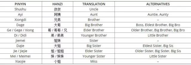 中国的称呼: