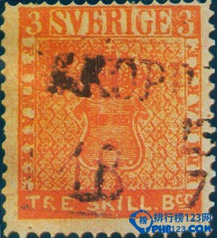 世界最珍贵的孤本邮票之五:3斯基林邦科错色票 (瑞典 – 1855年)