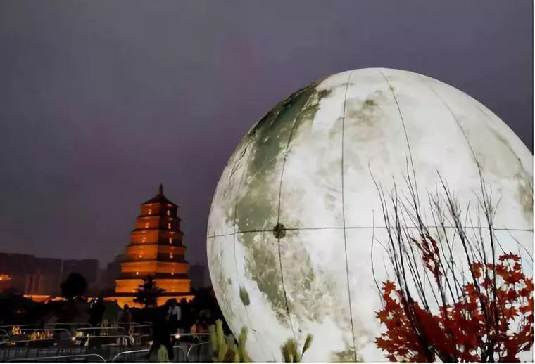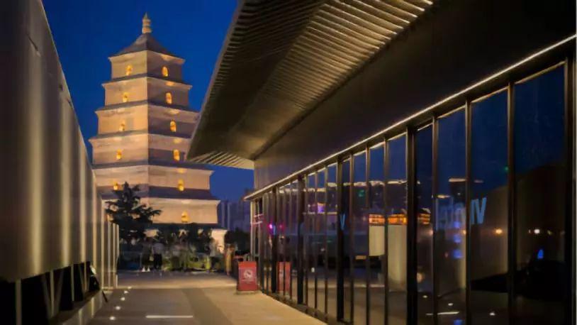 逛街一天逛累了,夜晚可以登上花园看到夜幕下的大雁塔和不夜城的夜景。