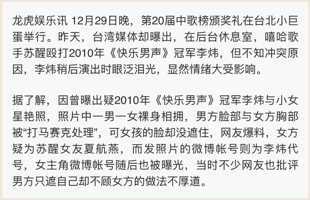 传言,在中歌榜的后台,张杰关上了门,任由苏醒在里面暴打李天王。
