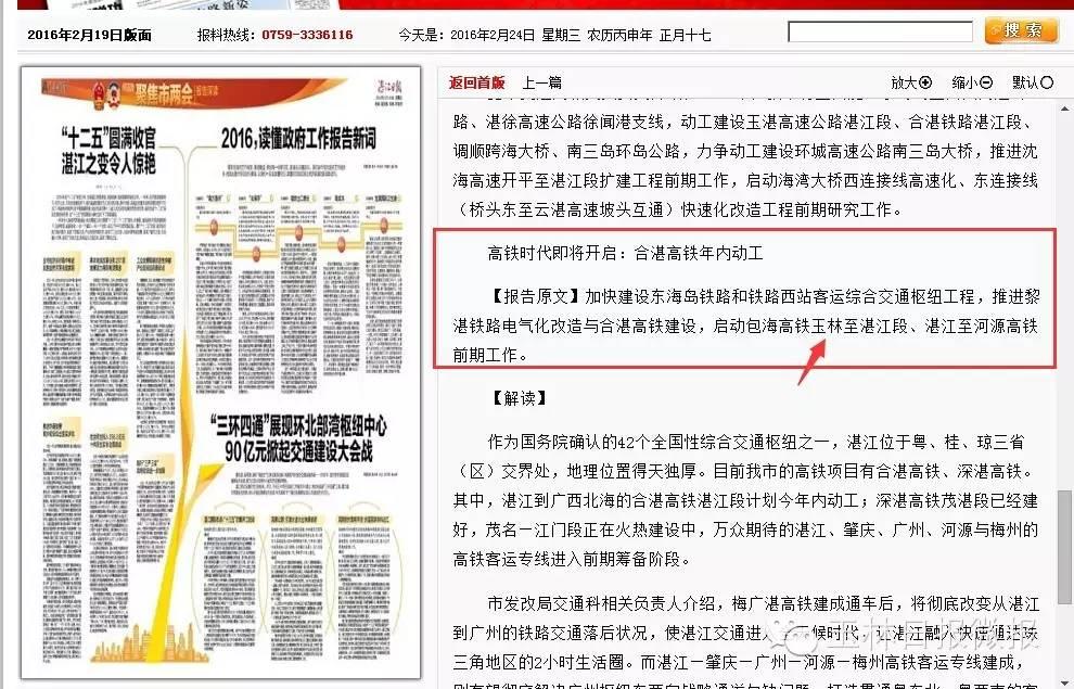 同时,在2月19日出版的《湛江日报》发表了《“三环四通”展现环北部湾枢纽中心90亿元掀起交通建设大会战》的文章,文章对《2016年湛江市政府工作报告》进行解读。↓↓↓