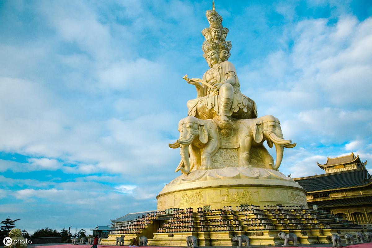 四面十方普贤金像系铜铸镏金工艺佛像造像,这是是世界上最高的金佛。金佛通高48米,代表的是阿弥陀佛的48个愿望。