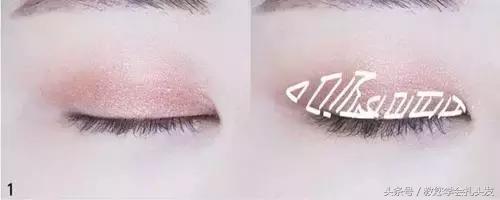 Step1:在上眼睑的白色区域内涂上橘咖色眼影,并微微晕染开。