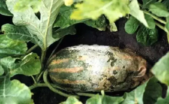 苗期染病,引起猝倒,死秧。结瓜期主要危害果实,贴土面的西瓜先发病,病部初呈褐色水浸状,后迅速变褐软腐。湿度大时,病部长出白色绵毛,即病原菌菌丝体。