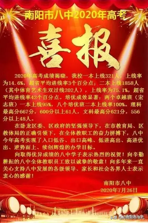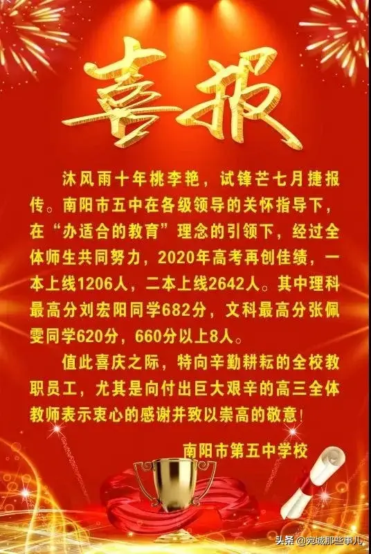 最近,随着高考成绩揭晓,南阳不少高中也亮出了自己的成绩单。我们经常会说某某高中好,羡慕别人的孩子上了某某高中。那么,这些学校高考成绩究竟怎样?老徐颇是费了一番工夫,搜集整理了南阳实力相对较强的高中进行比较,用数据来说话。也给今年参加中考的考生家长一些参考。