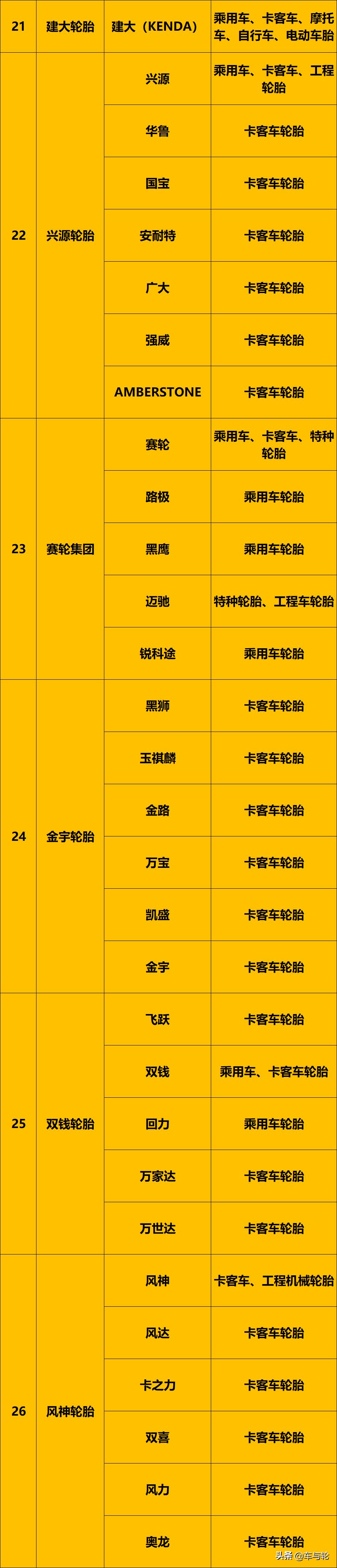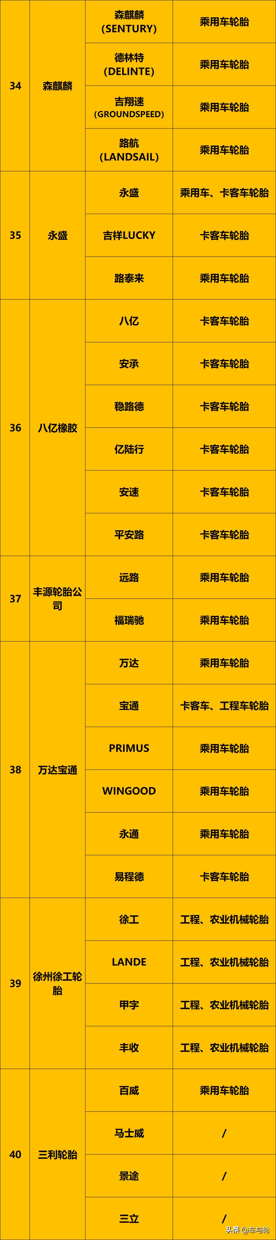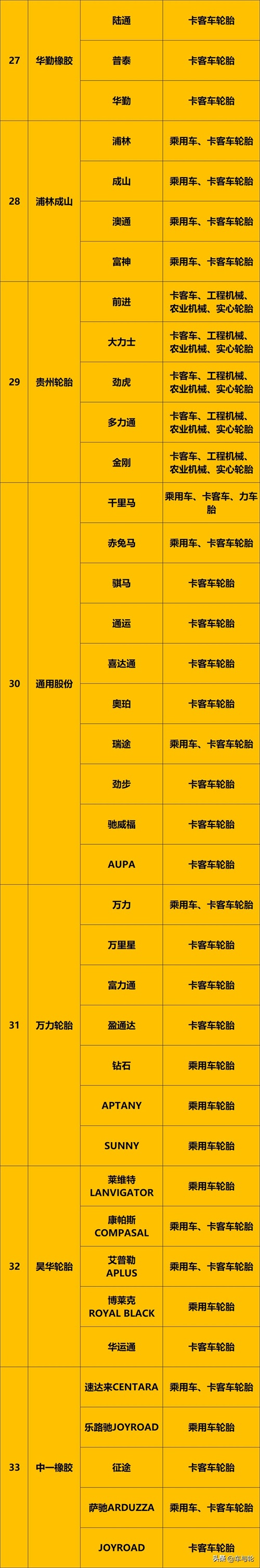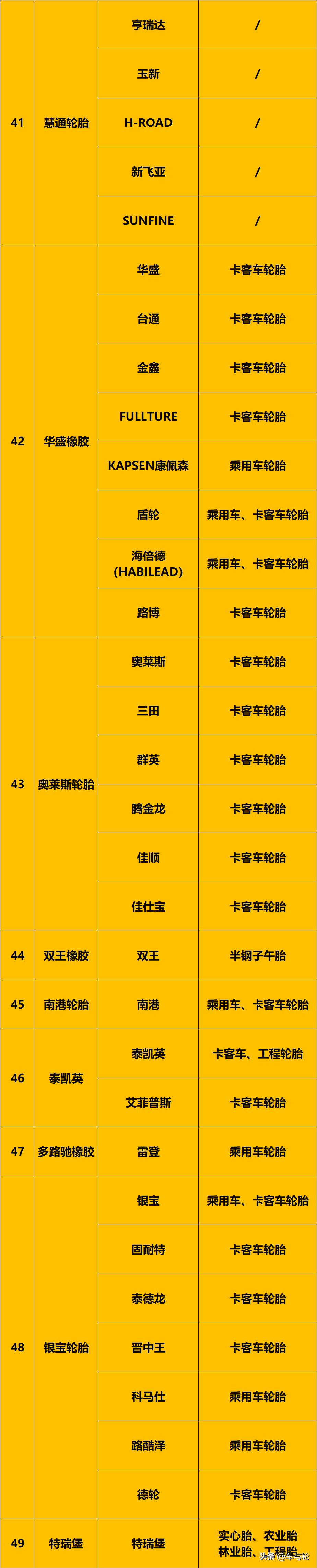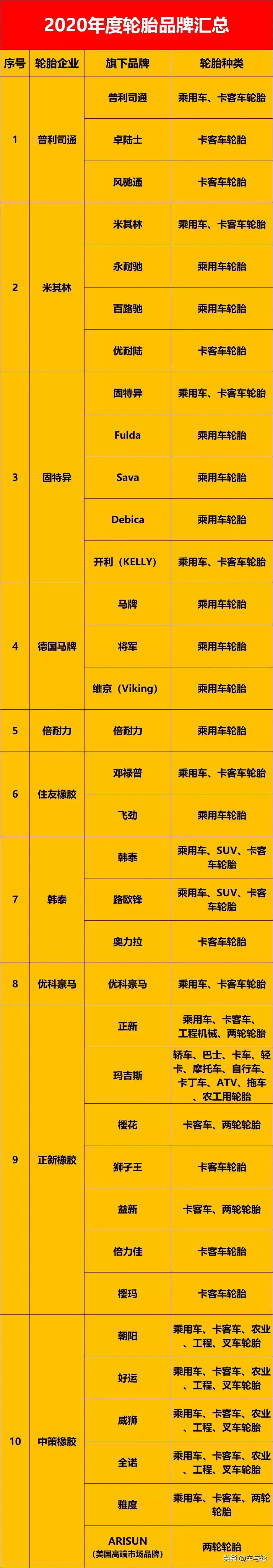 2020最新版轮胎品牌大全,收藏转发!