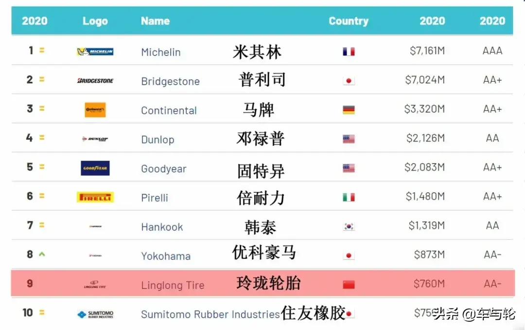 玲珑轮胎:2020年轮胎品牌十强中,唯一上榜的中国轮胎品牌