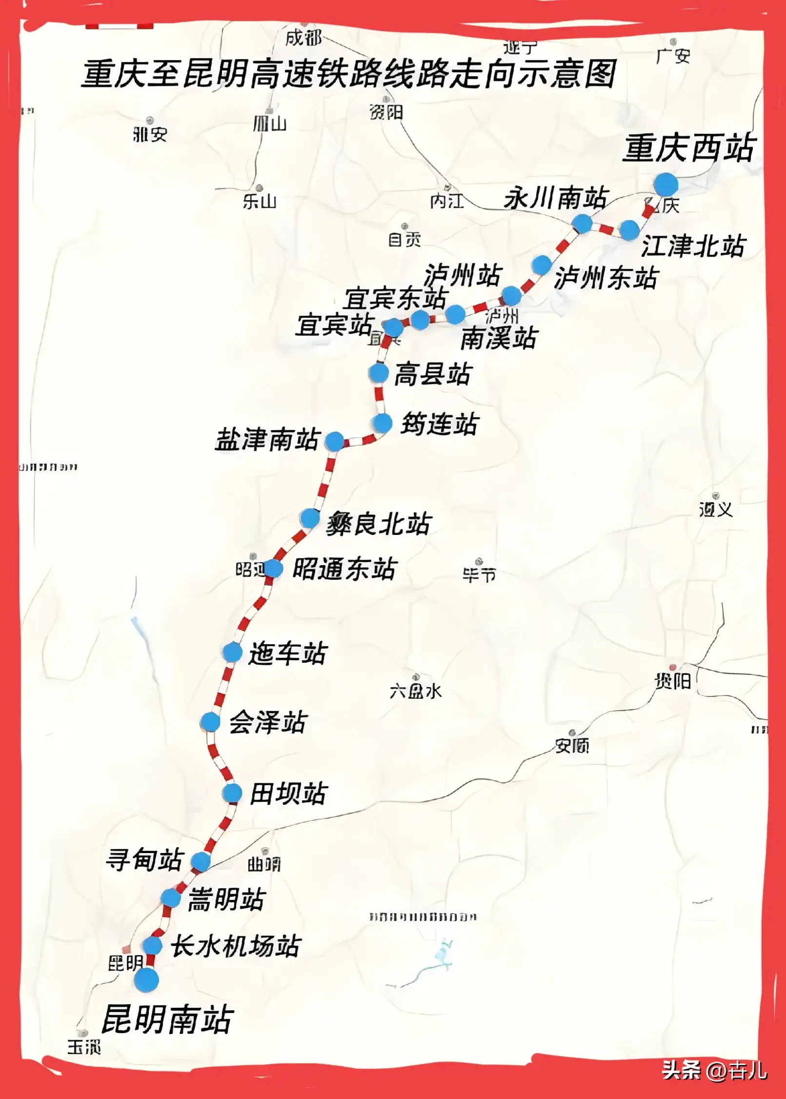 重庆境内4座:重庆西站~九龙坡站(预留)~江津北站~永川南站