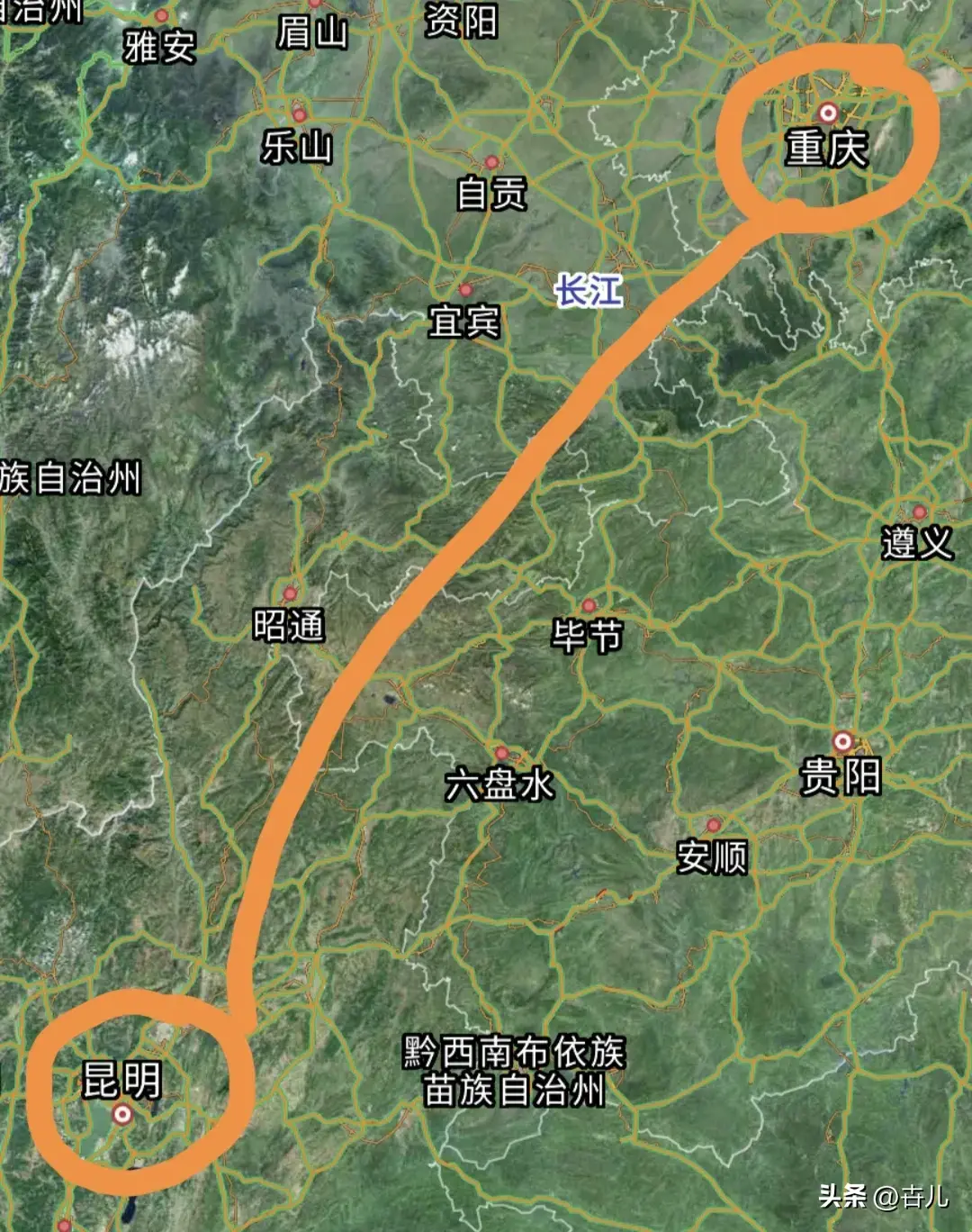 线路途径: 重庆市~四川省~贵州省~云南省,纵跨四个省市。