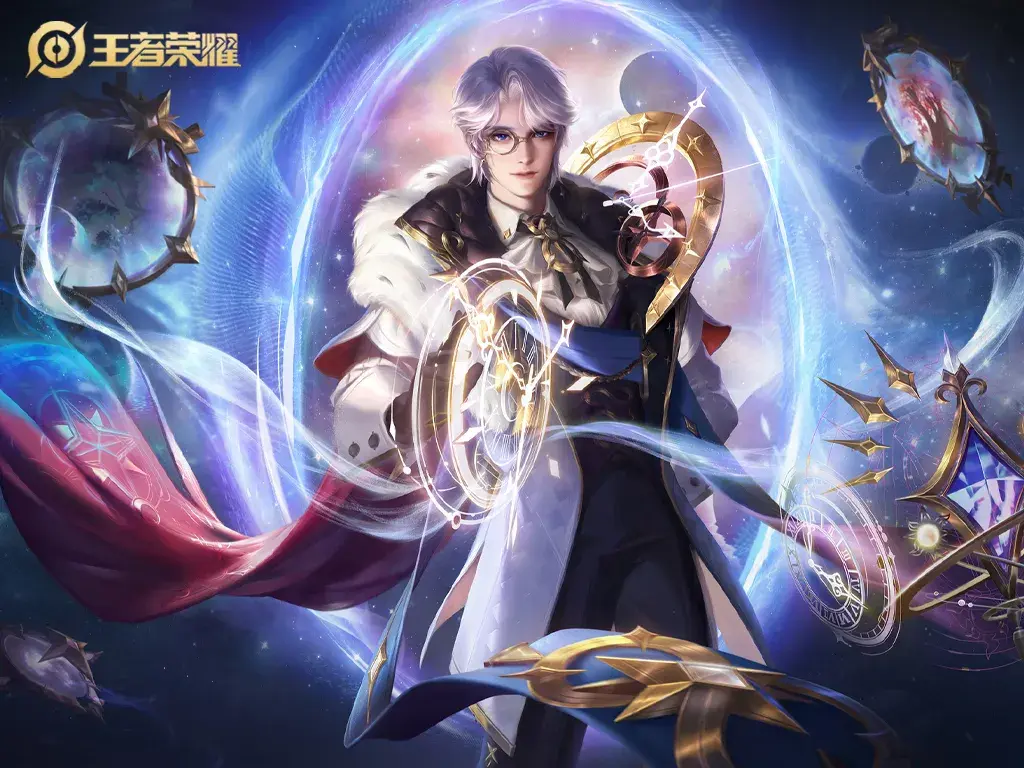 第四款:诸葛亮的“星域神启”皮肤将他塑造成精通时空魔法的大魔法师,巴洛克时期贵族装束的设计赋予整体造型高贵与优雅。然而,模型和金能特效的过度夸张给人一种廉价感和油腻感,与皮肤的主题不太相符。游戏中的技能特效设计仍然充满创意,尤其是以操控时空法器为主题的元气弹。尽管存在一些视觉上的瑕疵,但总体来说,是一款适合对诸葛亮情有独钟的玩家尝试的皮肤。