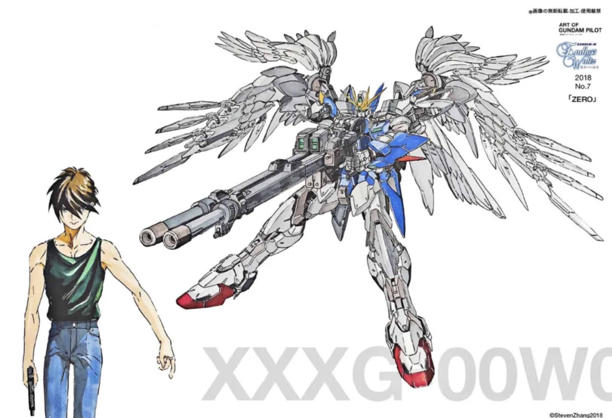 飞翼高达和它的驾驶员希罗,飞翼高达算是W五小强中最强的机设了,背包的类似天使翅膀的飞翼很有个性。