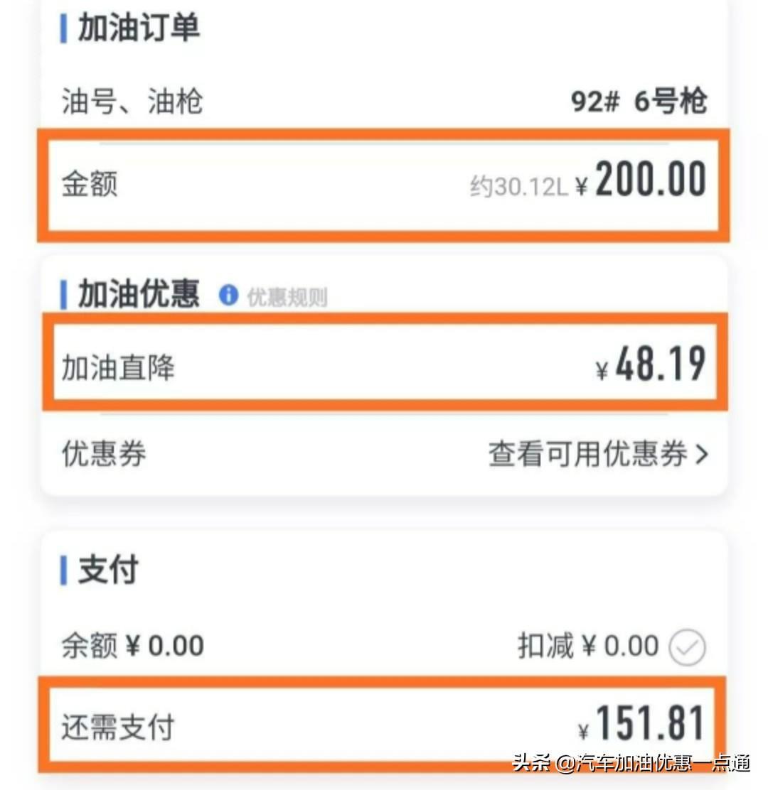 除了加油卡,现在"一键加油"也比较方便,不用提前充值,到了加油站直接手机付款就可以。小编加油前通常先在手机上找一下附近加油站优惠多少,有时壳牌或者中化加油站能够优惠到1.6元/升,挂牌价6.31元,加油200元,最多能够优惠50元左右,还是感觉比较划算的。