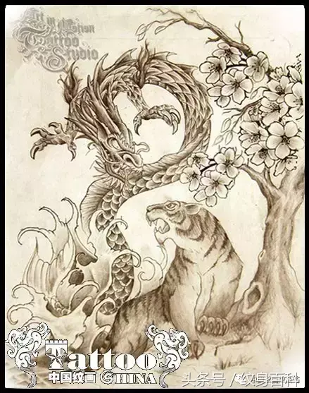 在这些纹身作品和手稿中,龙和老虎的组合一向是人们看好的。