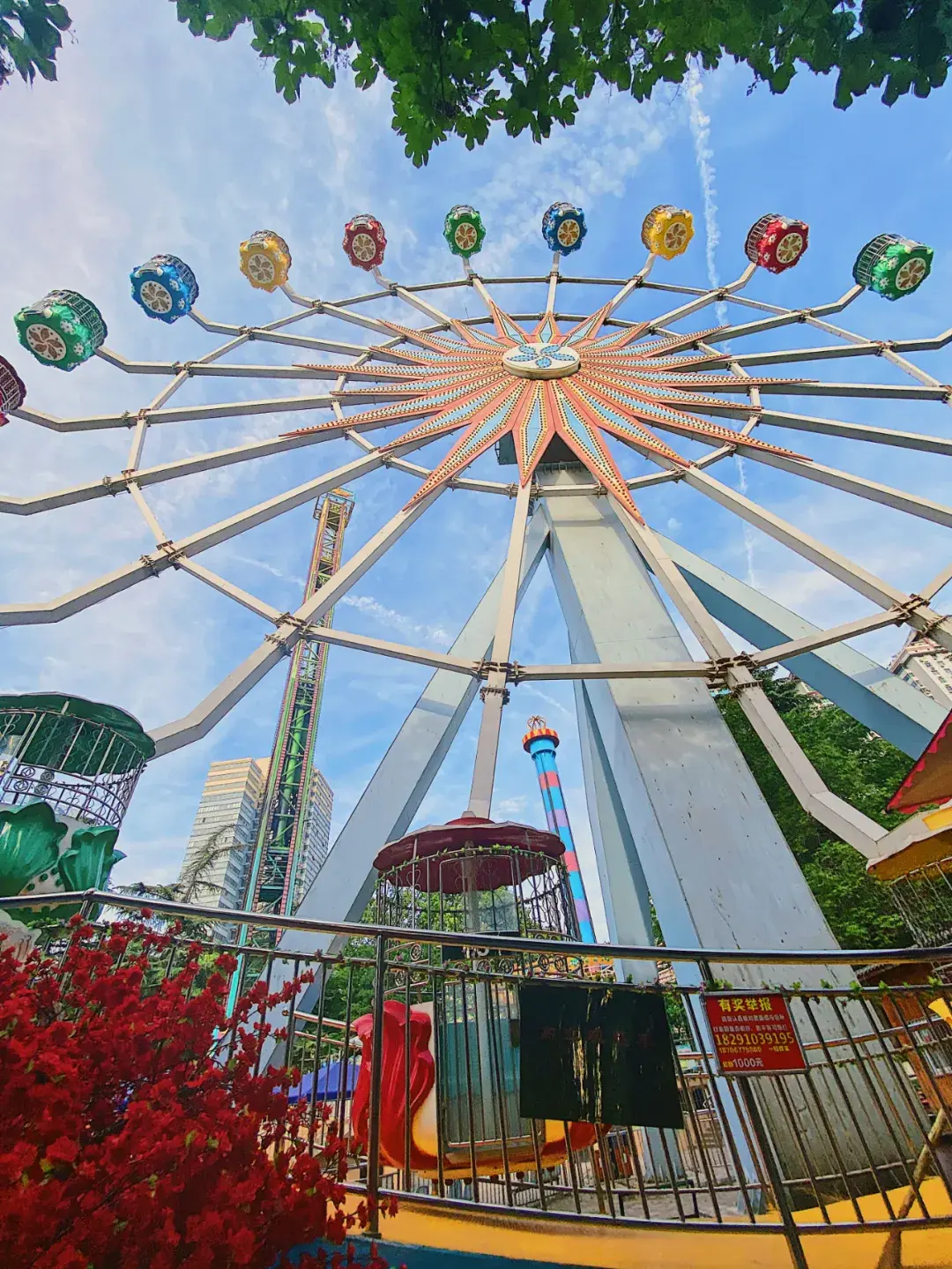 他的游乐设施相比兴庆公园游乐场的比较新一些,在这里坐一次摩天轮,整个公园的景色都可以尽收眼底。