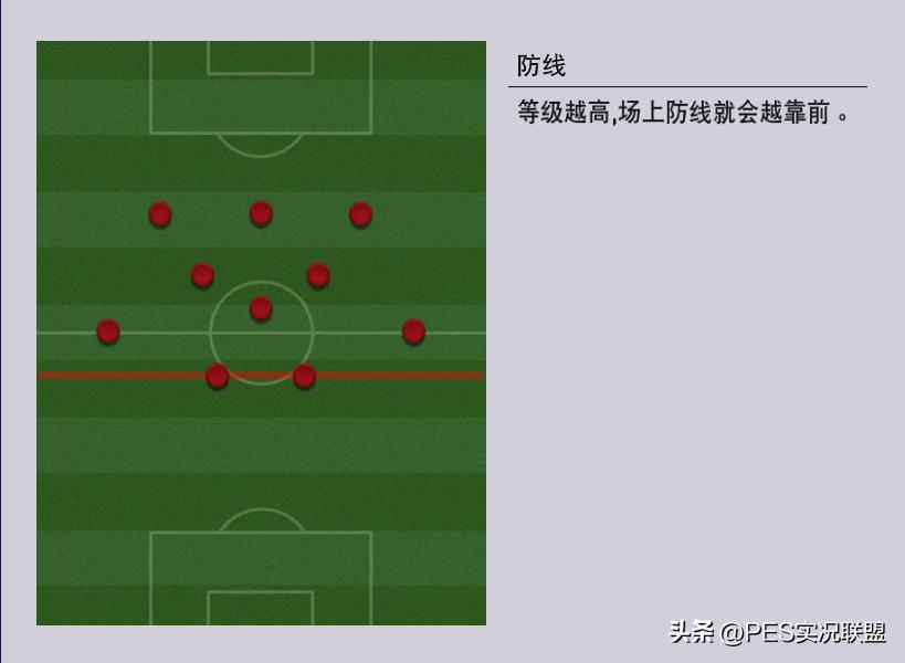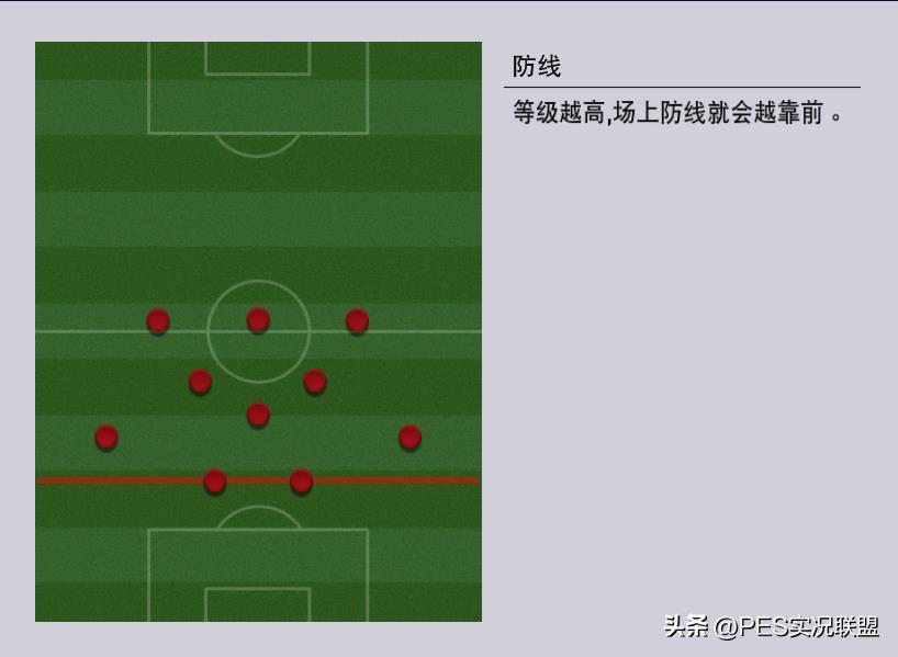 下面这两张图,左侧是防线等级1的教练,右侧是防线等级10的教练。防线等级低的教练,中后卫靠近己方禁区;防线等级高的教练,中卫靠近中场。