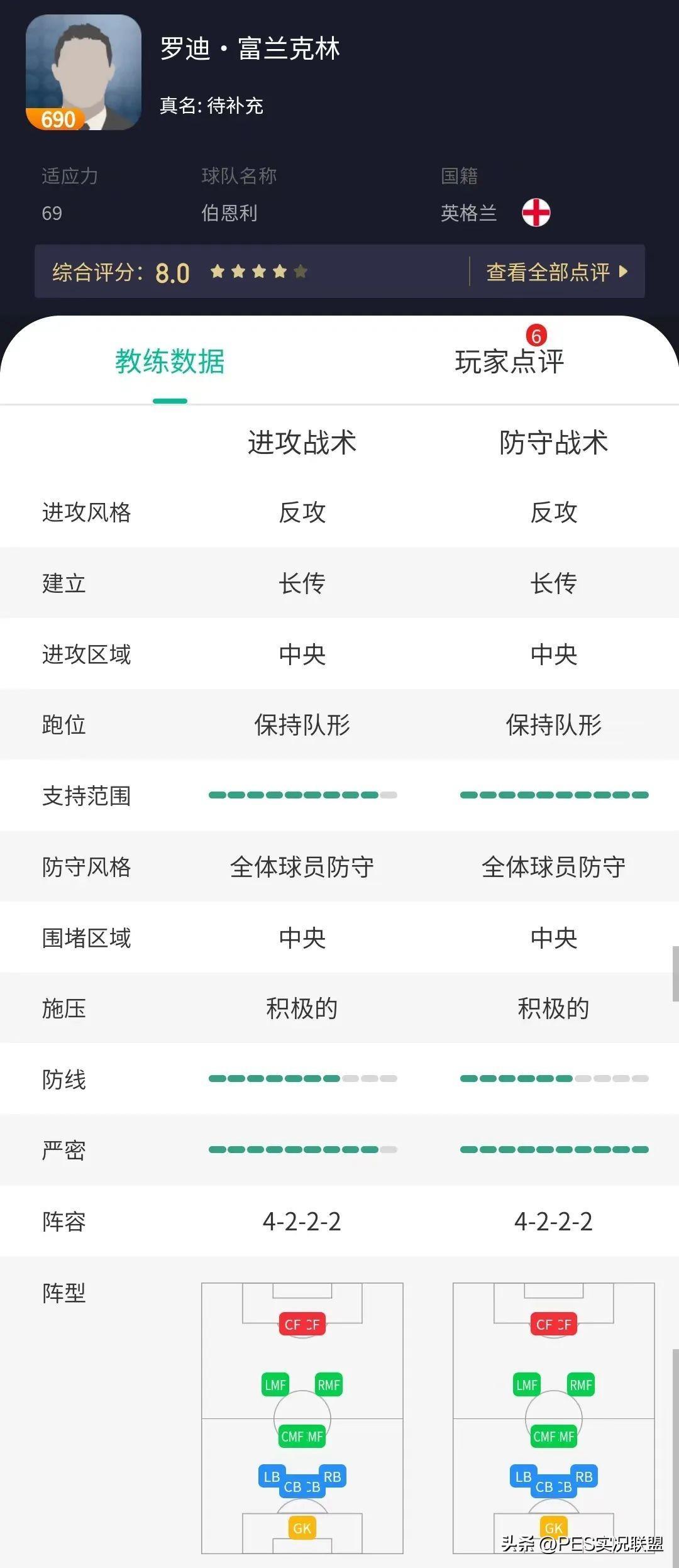 因此富兰克林整体战术的合理性与同阵型的教练相比,各方面没有明显短板且特点突出,应该是现阶段4222阵型的最优解之一。