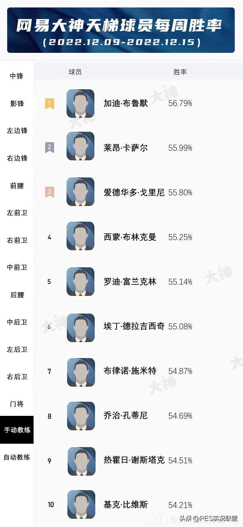 最强教练易主!三人跌出前五!实况足球胜率最高的十大教练盘点!