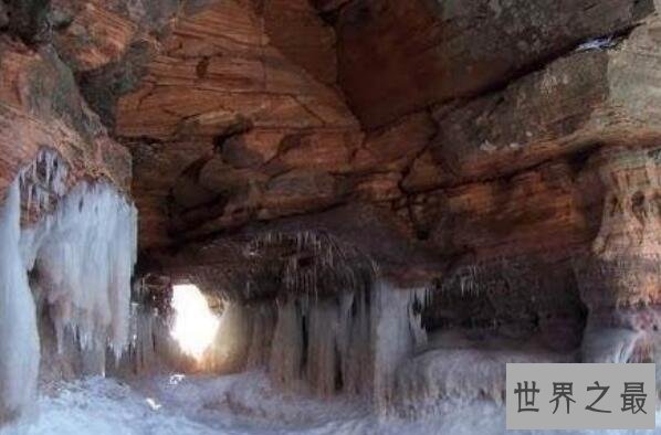 使徒岛冰洞位于美国威斯康星州苏必利尔湖附近,在冬季,游客只需步行1.6公里,穿过结冰的苏必利尔湖就可以到达,欣赏洞内的各种天然冰雕。
