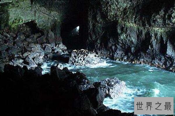 在中国西沙群岛上有一个神秘的龙洞,洞深不可测,传闻洞中有巨大的动物,所以被渔民称为“龙洞”,洞内的海水呈墨蓝色,在一片浅绿色的海水中,看起来有些阴森恐怖。