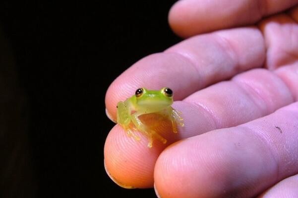 玻璃蛙是主要生活在热带雨林中的溪流沿岸或者有云雾笼罩的山上的中南美洲青蛙,而这个玻璃蛙也是因腹部的皮肤如同透明的玻璃,可以清晰地看到身体内部的构造和脏器而得名,是被吉尼斯世界记录认证的最透明的两栖动物,它的皮肤也有利于它们在栖息地的隐蔽。