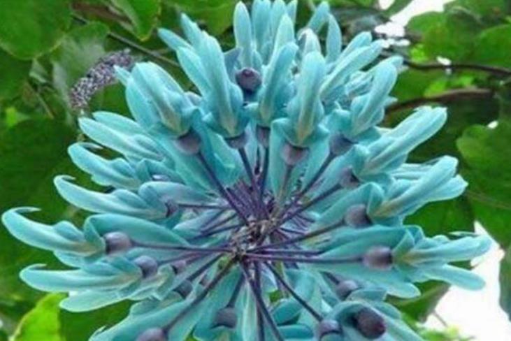玉葡萄开花的颜色是蓝色,底部是紫色,看上去特别漂亮,就像一串葡萄挂在手上,现在已经是濒临灭绝的花卉品种。