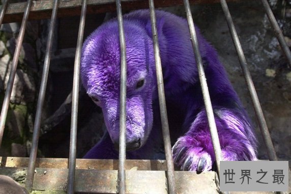 随着越来越多的人发出疑问,北极熊为什么会是紫色的?这家动物园的兽医做出了解释,这只原本也是长着一身浓厚白毛的14岁雌熊叫Pelusa,患有皮肤病,由于接受了一种特殊的皮肤问题治疗方法,涂抹上的紫色药膏,整个身体变成了紫色,不过兽医相信一个月内Pelusa的毛发将重归正常。