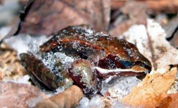 木蛙,一种生活在北极的动物,它们有一种特性很有趣:在气候恶劣的环境中自我冰封,并且让心脏停止跳动。环境恶劣,食物不好找,木蛙就把自己冰封起来,当该地区气温上升时,它们就又会醒来,科学家们对这一特性也很感兴趣,他们正在努力解开这个谜团。
