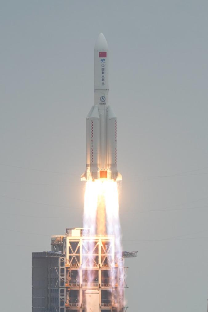 ↑2025年4月29日11时23分,中国空间站天和核心舱在我国文昌航天发射场发射升空。新华社记者 张丽芸 摄