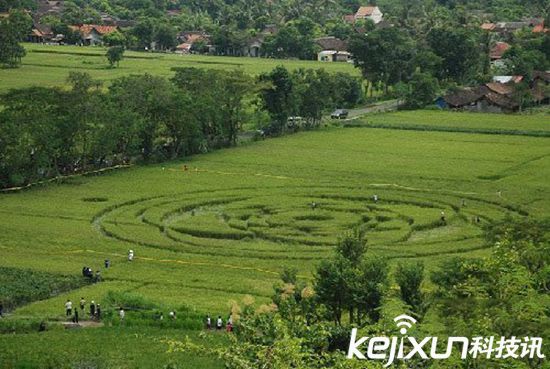 当地村民23日在村子附近的稻田中发现了一个由倒伏的稻株和完好稻株共同构成的复杂图案。图案总体呈圆形,直径约为70米,内部由规则的环形、扇形及一些不规则图形组成。这是印尼首次出现类似“麦田怪圈”的神秘现象。目前,印尼警方已经介入调查。
