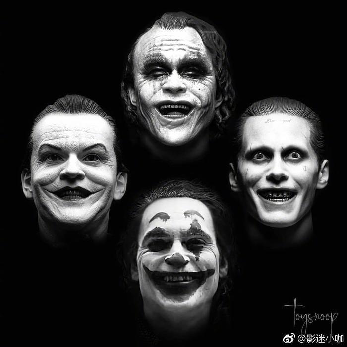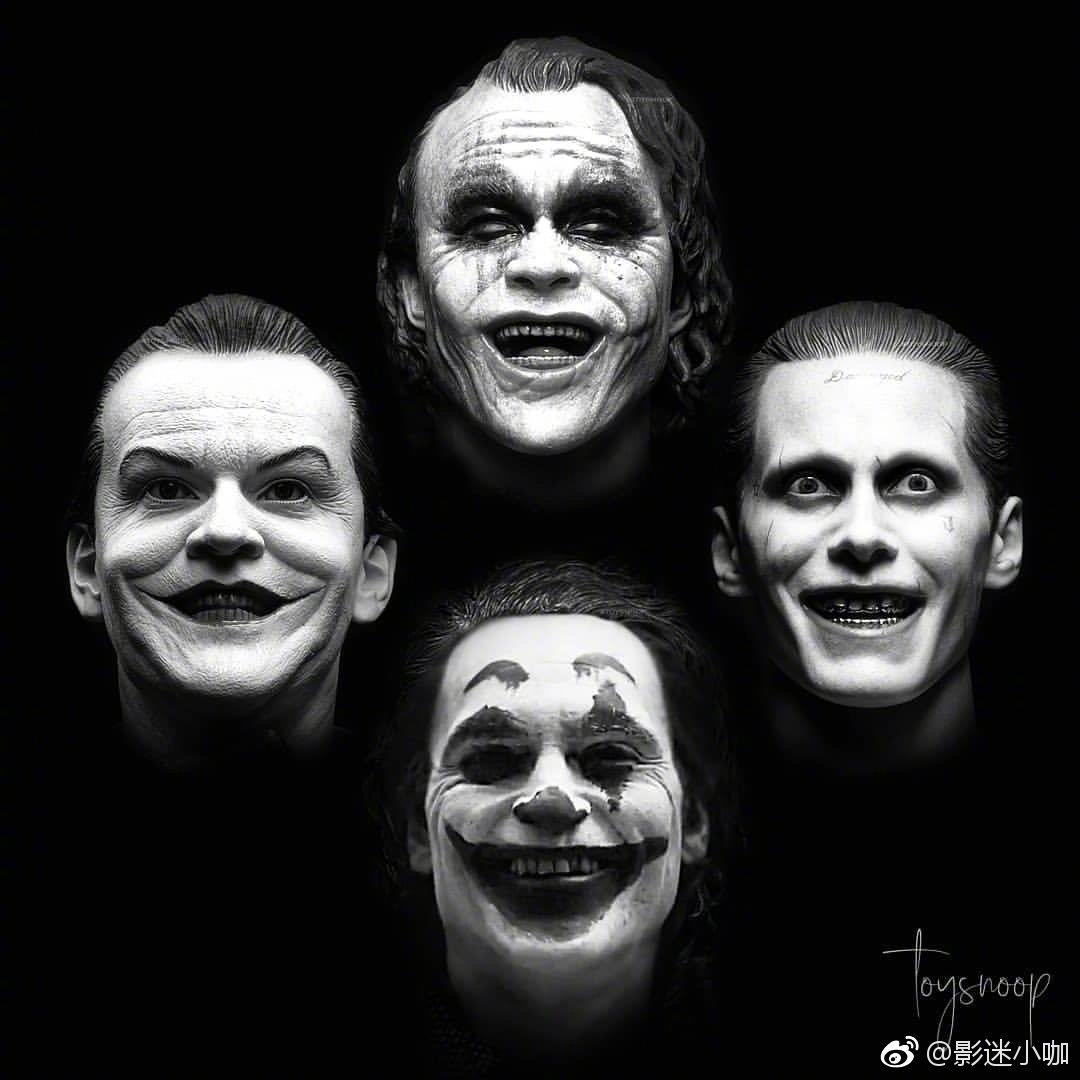 1989年《蝙蝠侠》:杰克·尼科尔森;2008年《蝙蝠侠:黑暗骑士》:希斯·莱杰;2016年《自杀小队》:杰瑞德·莱托;2025年《小丑》:杰昆·菲尼克斯。