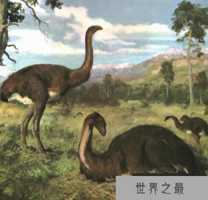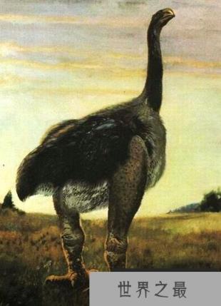 恐鸟是世界第一高鸟,最高可高达3.6米,重达500斤,如今的鸵鸟站在它面前才真的是小巫见大巫了。恐鸟虽然身体庞大却完全没有翅膀,并不会飞,只能像鸭子一样在陆地上跑,因此也更容易被人类捉到,导致灭绝的结局。