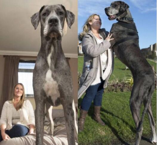 大丹犬乔治是前吉尼斯世界上最大的狗纪录拥有者,在2010年时凭借肩高1.09米、站立高度2.2米、体重220斤的成绩成为“世界上最高的狗”,但可惜在2013年时8岁大的乔治在家中去世了,不过它的名头在“狗圈”中依然无比响亮,不过现在是被大丹犬Freddy给超越了。