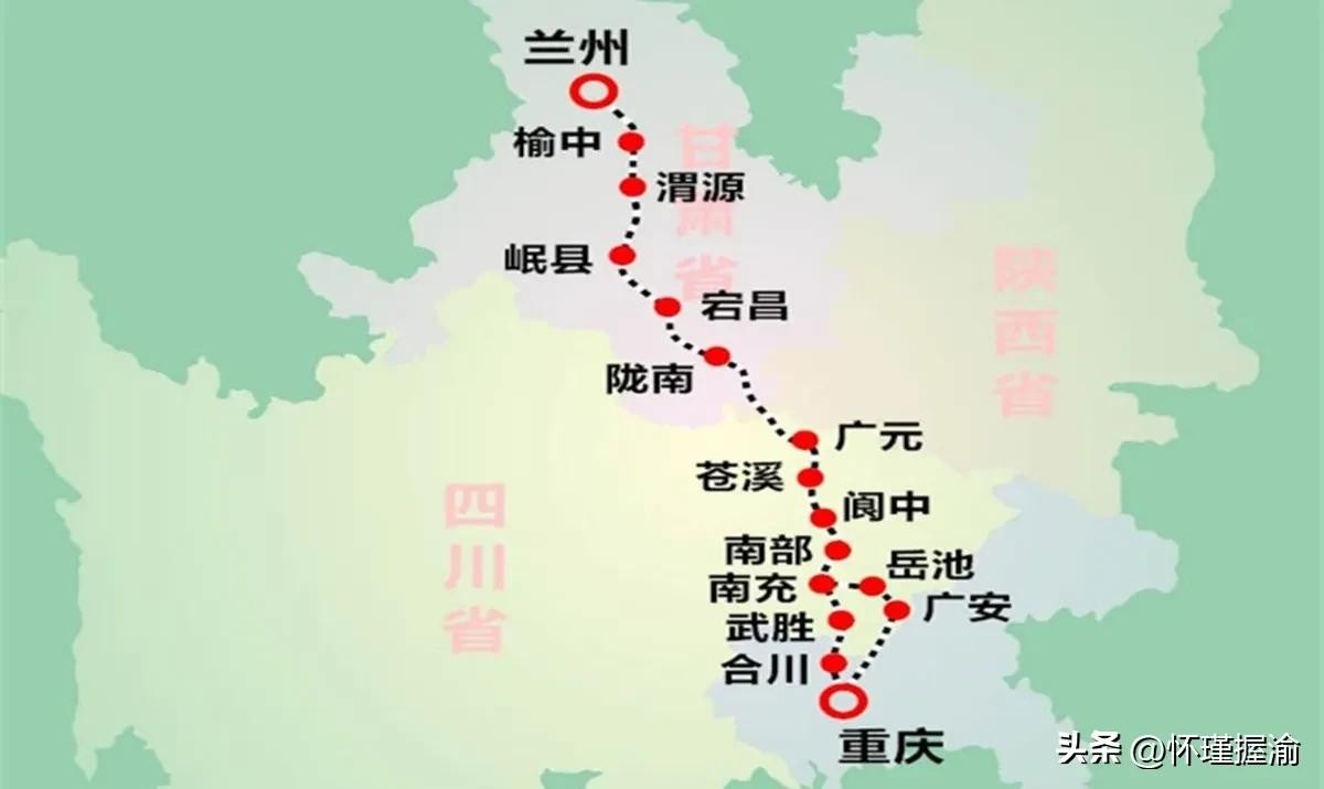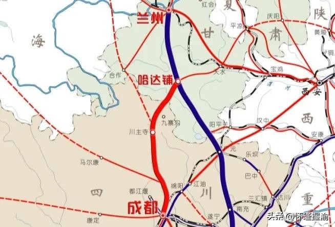 兰州至成都段是新规划路段,由兰州西站至成都东站,设计时速350公里。其中,兰州至甘南(合作)段与兰合铁路共通道,甘南至黄胜关段与川青铁路共通道,黄胜关至重庆段与方案六相同。