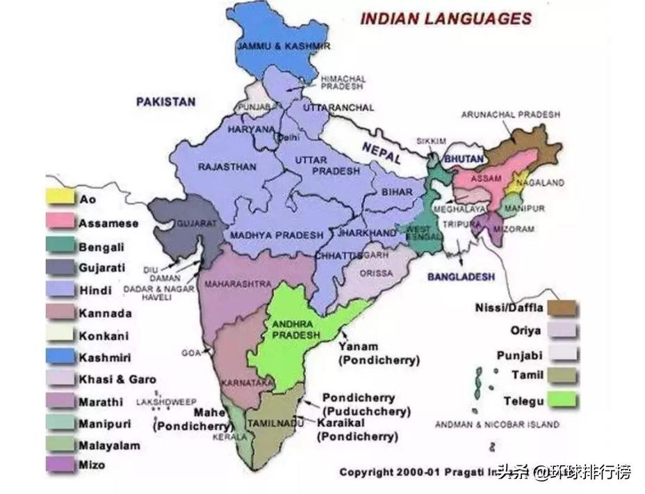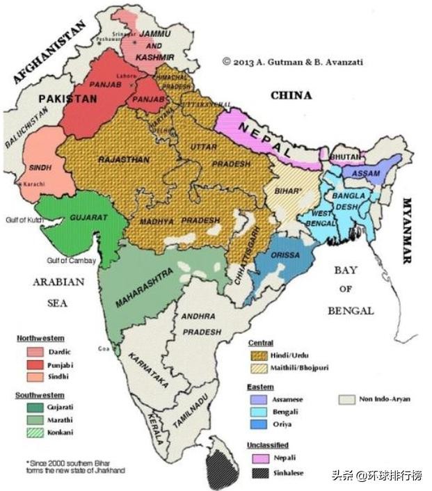印度语言分布图