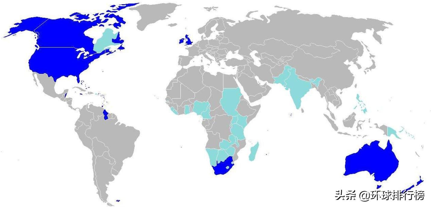 北美的美国、加拿大,欧洲的英国,大洋洲的澳大利亚,亚洲的印度,还有非洲过半数国家,都将英语定为官方语言。从说英语国家的疆域来说,无疑是第一位的。从说英语国家的经济来说,也是第一位的。