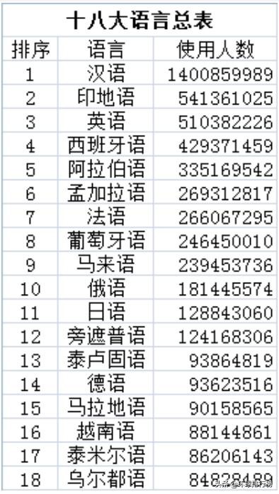 下面给个16年的数据:截止到2016年,日常使用人口超过8000万的语言总共有18种