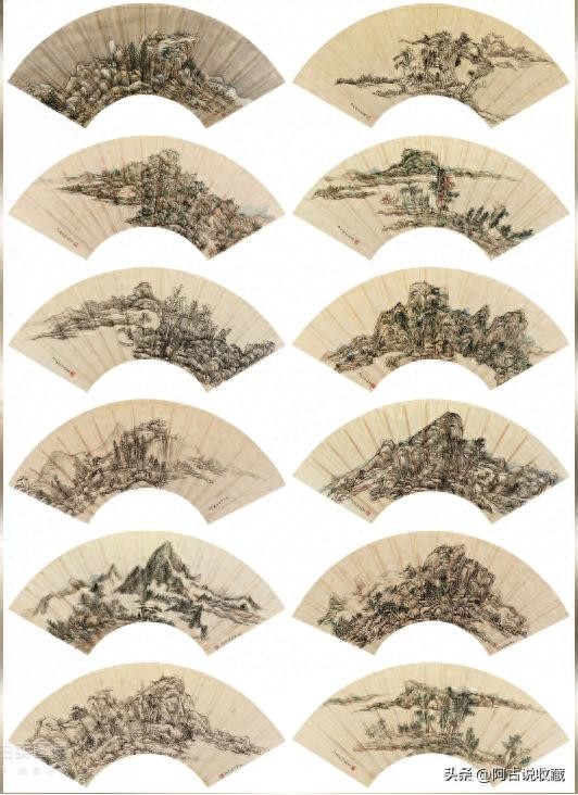 王原祁 山水扇面 (十二帧) 册页 (十二开)