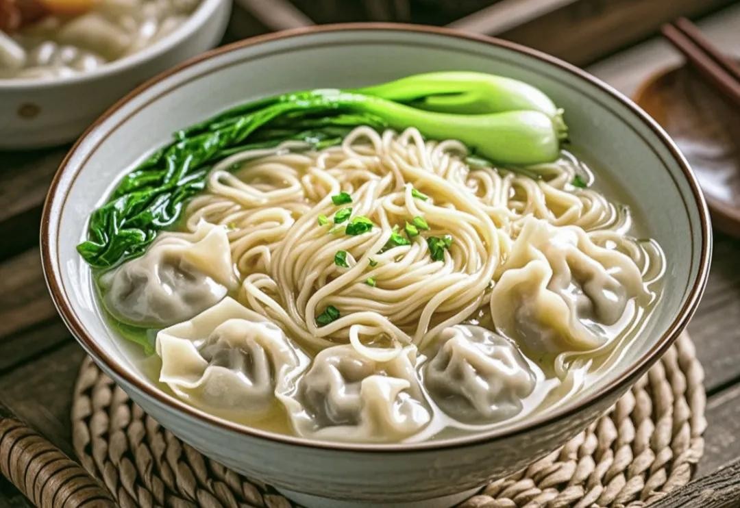 广式云吞面,广东的招牌面食。在陶陶居的广州上下九店,约30元就能品尝到这一碗细细的面条和鲜美多汁的云吞。清淡鲜美的汤头让人回味无穷,每一口都能感受到粤式美食的精髓。