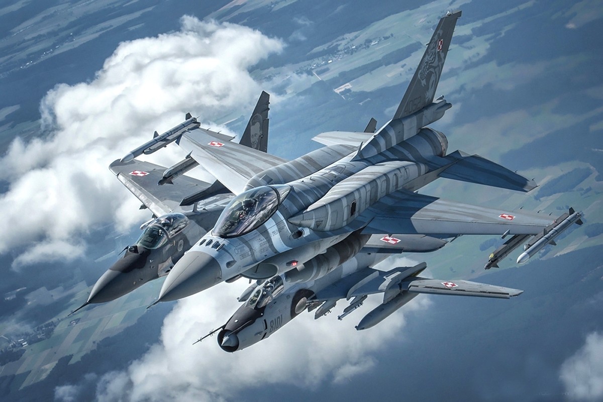 波兰军演一幕,采用低可视度涂装的F-16与米格-29、苏-22伴飞