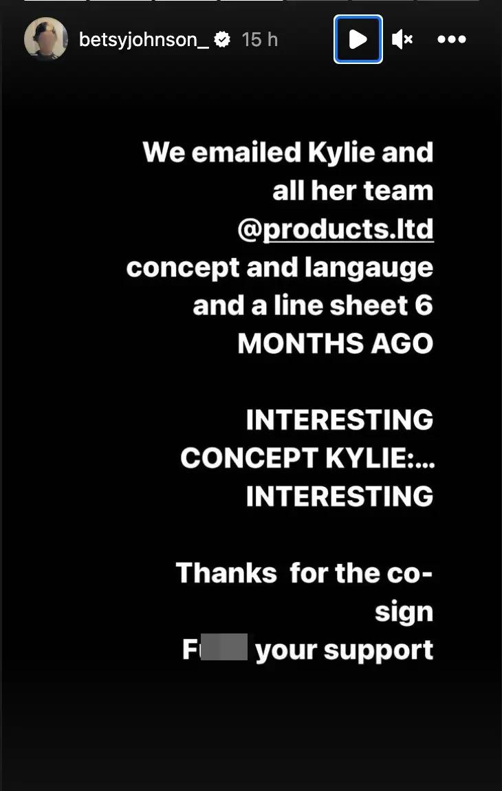 至少设计师 Betsy Johnson 不是这么认为的——在 khy 首季设计推出后,她曾在 ins 上发文控诉金小妹的设计抄袭了自己团队的作品: