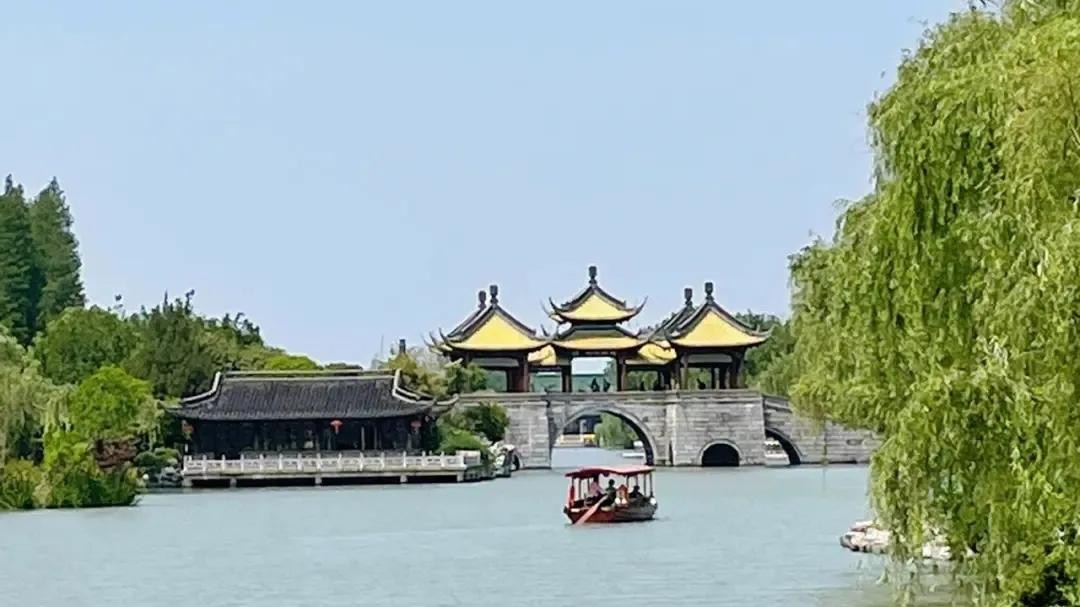 这里的“二十四桥”景观,是古代扬州二十四座桥梁的合称,每座桥梁都有不同的形状和结构,非常有趣。
