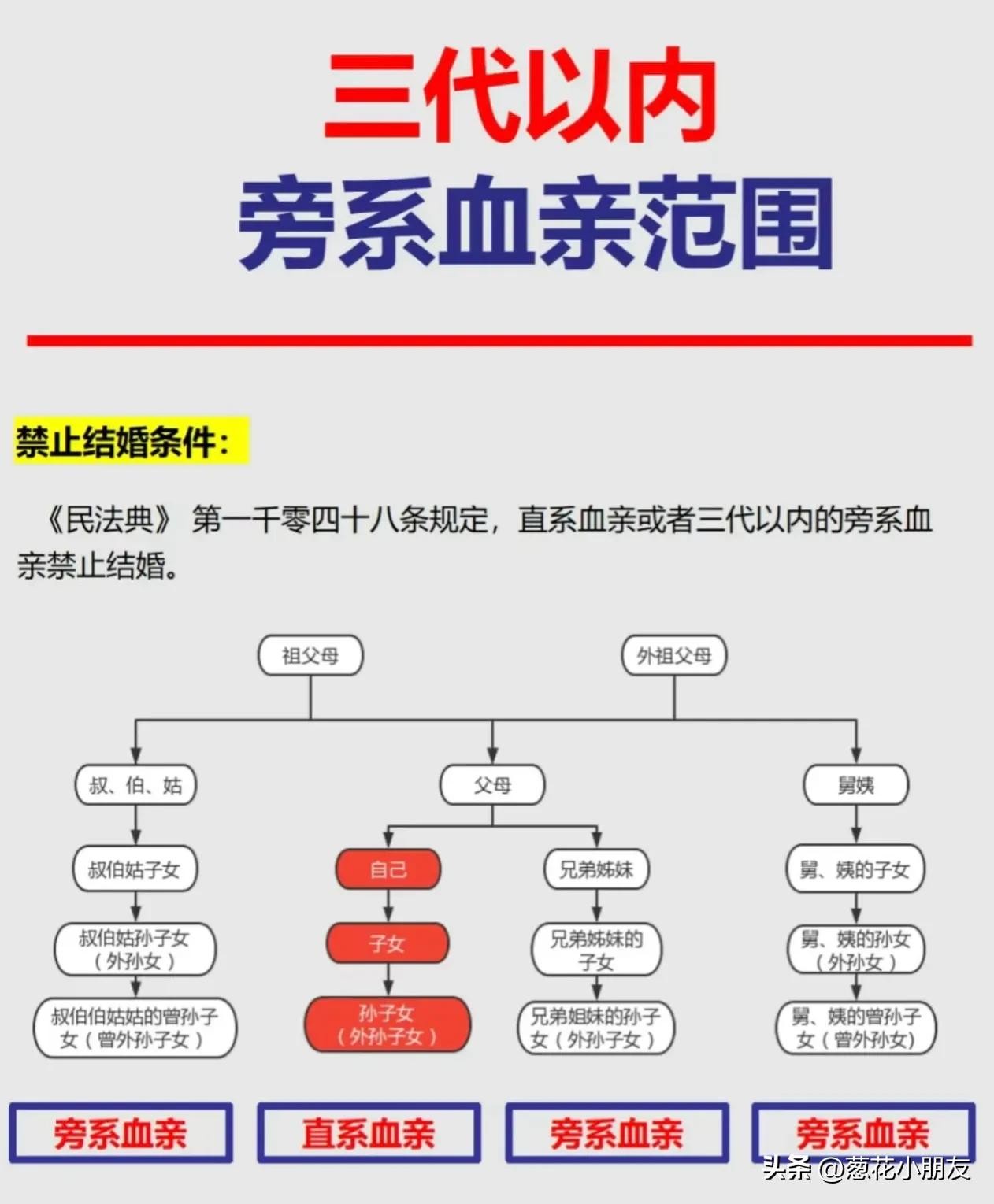 根据《民法典》第1048条规定:直系血亲或者三代以内的旁系血亲禁止结婚。