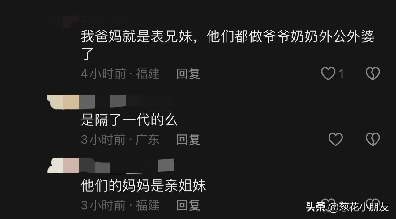 原来,这对夫妻原本就是亲戚关系,丈夫的父亲和妻子的母亲是同胞兄妹,所以这对夫妻就是表兄妹。