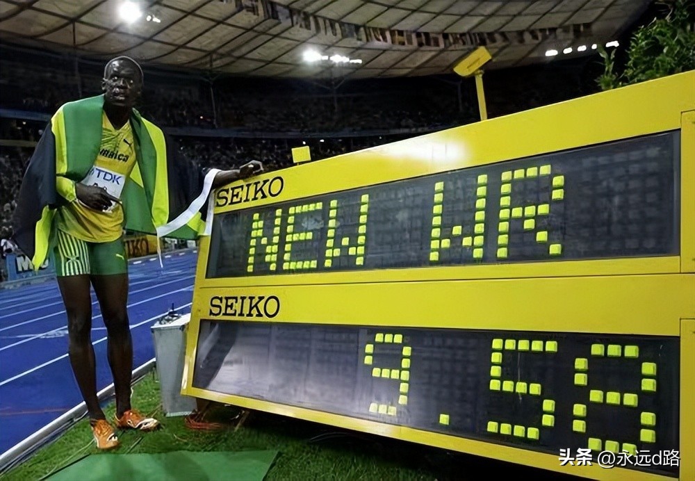 第四项男子100米世界纪录9秒58,保持者尤塞恩博尔特创造时间2009年柏林田径世锦赛,牙买加这样一个小国短跑天才层出不穷,尤塞恩博尔特是其中的最杰出代表。2008年2012年2016年连续三届奥运会,博尔特包揽了男子100米和200米冠军,以及和队友合作包揽男子4*100米冠军。2009年柏林田径世锦赛是他的巅峰之作,他在100米决赛中跑出惊人的九秒五八,至今14年时间无人可打破。