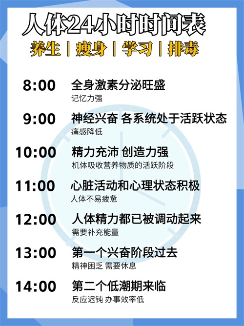 时间是我们的财富,而身体是我们革命的本钱。只有了解自己的身体,深入了解每个器官的运作规律,我们才能在正确的时间段做出正确的决策!