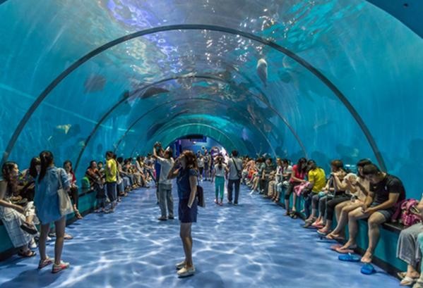 在这里会有耳目一新的美人鱼表演,曼妙的身姿在碧波中舞动,带您进入梦幻的海底王国,潜水员们在色彩斑斓的鱼群中穿梭,幸运的游客也许会有机会深入海底,与鱼儿共舞。