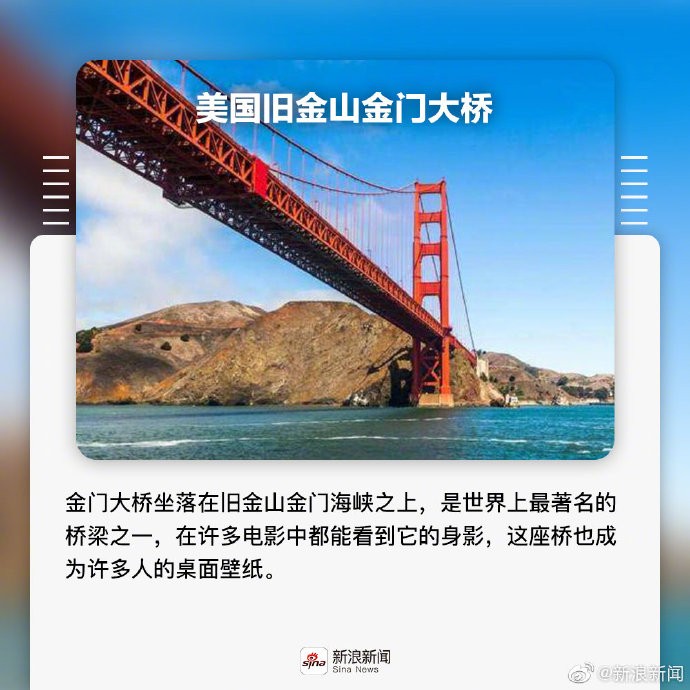 【世界上著名的9座桥,不知道你走过几条?】1937年的今天,旧金山金门大桥首次建成通车,它是世界著名的桥梁之一,也是近代桥梁工程的一项奇迹。当然,世界上还有很多奇迹之桥,它们或历史悠久,或结构精细巧妙。城市与桥樑,是兴衰起落最真实的记录;旅行与桥樑,是心灵与天地的温馨相融;人文与桥樑,是建筑艺术的不朽传说。在世界众多著名大桥中,有几座大桥最具特色,让我们一起来看看有哪些吧!转发,收藏这些连接美好的“艺术品”!