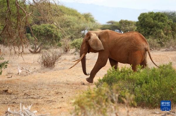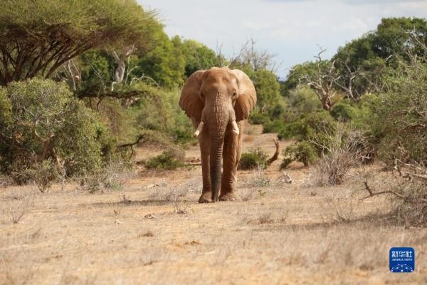 这是7月28日在肯尼亚察沃国家公园拍摄的大象。