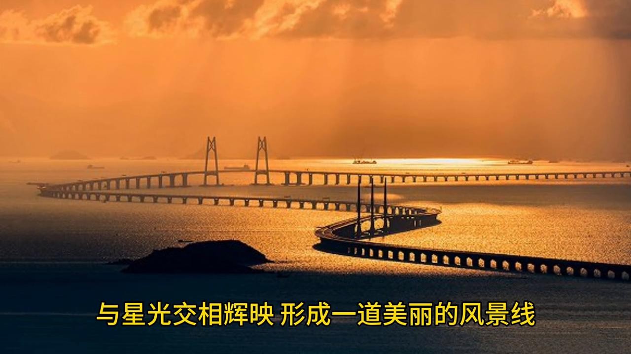 港珠澳大桥这座连接香港、珠海和澳门的雄伟工程,不仅是中国建设史上的奇迹,更是世界桥梁史上的壮举。站在桥上可以欣赏到令人震撼的海景和桥景。一侧是碧波万顷的南海海浪轻轻拍打着桥墩,仿佛在诉说着千年的故事。另一侧则是蜿蜒起伏的桥面,犹如一条巨龙跨越在海面之上。每当夜幕降临,桥上的灯光亮起,与星光交相辉映,形成一道美丽的风景线。