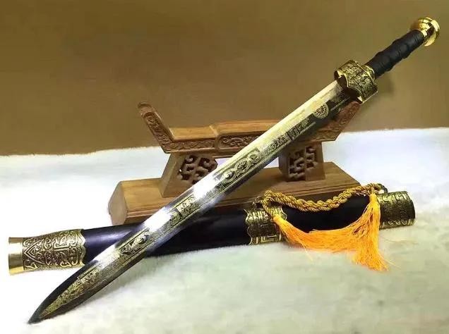赤霄剑又名斩蛇剑,剑长三尺,剑上铭有赤霄大篆书,剑身仿秦剑,秀有花纹,是汉高祖刘邦在秦末民变中“斩蛇起义”所用的剑。